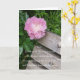 Blank style greeting card that features the photo image of a lovely, pink Peony bloom hanging over a wooden park bench along with the inspirational words of the Serenity Prayer. Select your greeting card finish style.