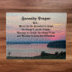 Jigsaw puzzle that features the scenic photo image of a colorful, pink, seascape sunset along with the inspirational words of the Serenity Prayer. Fun for the whole family! A perfect size for mounting and framing as well.