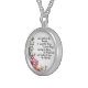I chose gold plated so that the metal would not react with my skin oils and perspiration. But, I changed the necklace from the gold plated one to a sterling silver. My skin cells will tarnish the silver. But it will not look as bad if some portion of the gold plated necklace somehow became compromised. Zazzle did a find job turning the picture into a pendant for me. As you can see, the colors and the printing of the final product, match the preview. The picture I took is not very clear. But I am pleased with the product I received.
