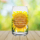 Soda can glass that features the photographic image of a bright, yellow Sunflower bloom along with the inspirational words of the Serenity Prayer printed in white, stylized script. Image is printed on one side of glass only. Perfect for serving sodas, lemonade and more at parties, picnics, barbecues, etc. Available singly or as sets.