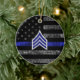 Sergeant Stripes Thin Blue Line Distressed Flag Ceramic Ornament