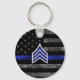 Sergeant Stripes Thin Blue Line Distressed Flag Keychain