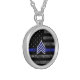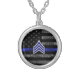 Sergeant Stripes Thin Blue Line Distressed Flag Silver Plated Necklace