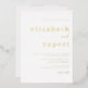 Invite family and friends to your wedding with this customizablegold foil pressed wedding invitation. It features simple serif typography and cursive script. This minimalist wedding invitation is perfect for any wedding season or theme. Personalize this modern wedding invitation by adding your wedding details. This gold foil wedding invitation is available in other foil finishes.