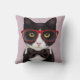 Design of a hipster style tuxedo cat wearing red specs and black bowtie on purple background. Digital illustration by Maryline Cazenave.
