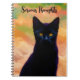 The front of this journal spiral notebook features my original photograph of a black cat with a serious stare. The image was processed in a Pop-Art style for an artsy flair. The words 'Serious Thoughts' is on the image; however, you can change the words to personalize it as you desire.