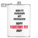 Well made flask, a little better than I had expected. Flask came in clear plastic box which gave it a nice presentation when I took it out of the zazzle packaging. Image is not printed on flask but on sticker. Don't know how this will hold up I haven't used it yet. This would make a Great gift! I plan to purchase more for friends! Cheers. I thought a little brighter than computer. Very crisp, writing wasn't