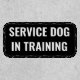 SERVICE DOG IN TRAINING. Easily identify your dog as a working service dog, while keeping your dog focused and cut down on distractions while working on training with one of these k9 service dog patches to your dogs harness or vest to let everyone know that he is training. Great for service dogs working or in training and therapy dogs.