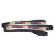 Service dog designation collar in red, blue, gold with shield symbols in a strong, professional style. See matching collar.