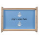 Anchor in white. Illustration of anchor with rope on blue background. Personalize the caption at bottom with Ship's name, Customize/Edit background to change color to your choice. ***Part of coordinated set - BKM1d.
