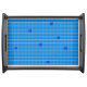 Mosaic pattern in graphic images of "3-d" square tiles, that look like glass or ceramic, are replicated across the background in a light blue. Seven dark blue squares are randomly scattered across. ***Part of coordinated set - BKM1z.