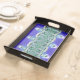 This is a well made, sturdy wooden tray with a flawless black finish and lovely map on the tray surface. It is both vintage & modern at the same time. Looks exactly like the photo; does not disappoint. So nice to find something of quality individually made and not the mass-produced 'shabby chic' merchandise seen in stores. I am so pleased to be able to give this to my college-age niece for her birthday. This can be used as a tray to hold jewelry or toiletries, or hung on the wall as art. The map surface is sealed (it is slightly shiny) so would be moisture resistant. It is well worth the asking price but I was able to apply a sale code as well. Very happy with my purchase. Map is crisp & clear and sealed with a water-resitant finish.