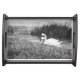 Black serving tray with black and white abstract Trumpet Swans. You will get many wonderful comments on this beautiful design.