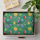 Brighten up your holiday season with this cheerful Sesame Street holiday-themed pattern graphic! Featuring favorite characters like Elmo, Grover, Big Bird, and Cookie Monster, all wearing festive Santa hats, this design brings a fun and joyful vibe to any project. The lively green background is sprinkled with colorful Christmas ornaments and whimsical evergreen trees, adding a playful touch that captures the spirit of the holidays.