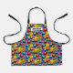 Great color and even though I ordered the kid size, it covers well enough to use during the holidays. I am not a big woman and prefer a shorter apron. I stand 5"6" and the length of the garment goes to mid-thigh. The tie straps fit well at my waist and even though there is no neck strap adjustment, the opening is plenty big enough. I am happy with the size and fit. I am sharing my apron with my 10 year old grandson, too! The color is vibrant and looks good, as shown on the website. The stitching looks strong and reinforced. Photographed is front side and back side of the apron, reinforced straps and coloring. My phone camera may not be the best at showing the details.