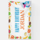 This colorful birthday banner features the Sesame Street foodie truck with Cookie Monster front and center, surrounded by cookies and festive decorations. The playful design captures the fun and charm of Sesame Street, making it the perfect decoration for a kids' party or food-themed celebration. Customizable with a personal touch, this vibrant banner sets the stage for a cheerful and memorable event.