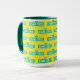 I was thrilled this came out so well. It is a very attractive mug with the colored handle and interior. Being able to personalize it was easy! It was designed for an end of the year thank you gift to the special recipient. perfect. Text lines up perfectly parallel to the top edge of the mug.