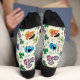 This fun Halloween socks are bright and colorful. The small print is crisp and shows the fun details. The softness of the socks feels nice on my feet and ankles. .