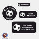 Sporty waterproof school stickers for kids. Set of 24 different square and round name stickers, soccer theme - black. Ideal for school and kindergarten. Label lunch box, water bottle, books, notebooks or other items with these great stickers. Great gift idea for kindergarten or school start.