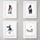 Unique set of 4 contemporary Inuit design framed prints. Other sets available for a stunning wall collection. These sets will enhance any modern space in your home. These modern, warm native designs will capture the essence of pure culture in your home.