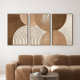Set of 3 abstract Japandi wall art prints in warm earth tones. Minimalist geometric design brings balance and modern elegance to living rooms, bedrooms, and offices. Perfect for creating a calming and stylish home atmosphere.