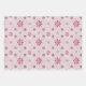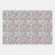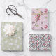 A trio of wrapping paper with a folksy floral and leaves design. The green and pink sheets have a textured background. This set is suitable for any special celebration.