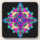 A set of six smart coasters with a brilliantly coloured traditional Rangoli pattern in shocking pink, turquoise, neon green and beige, from a digital design by Judy Adamson.