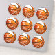 This set of 9 basketball party thank you stickers is suitable for boys or girls, and features the image of a realistic basketball -- two of the panels on the basketball are orange and white - personalize with the player's name & jersey number and a short custom thank you message - each sticker measures approximately 2.5 inches - by katz_d_zynes