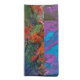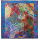 a set of 4 cloth dinner napkins with a marvelous abstract design. colorful and sophisticated. a collage of blue and purple, red and green, maize and orange.