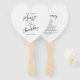 These custom wedding program hand fans feature a modern and minimalist hand lettered black calligraphy script design on a simple white background. Personalize with your names and wedding date on the front and wedding program details on the back. Best of wishes for your wedding and marriage! Designed by Susan Coffey.