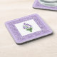 A set of pretty, square, cork-backed Coasters, with a motif of Violets, one of the February Birth Month Flowers, from a watercolour painting by Judy Adamson, bordered by a matching ditsy Violets Pattern and Check Gingham. Part of the Posh & Painterly 'Sweet Violets' collection.
