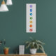 Rainbow colored chakra symbols adorn this cool poster. The graphic design includes icons for the seven major wheels of energy: Muladhara (root chakra), Swadhisthana (sacral chakra), Manipura (solar plexus chakra), Anahata (heart chakra), Vishuddha (throat chakra), Ajna (third eye chakra), Sahasrara (crown chakra). Feel free to change the background color of this poster to suit your personal style or home decor.