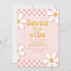 Seven is a Vibe Retro Check Pink Daisy Invitation