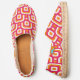 Beautiful Seventies Retro Mid-century Design. This gorgeous 70's pattern is dark pink, orange & white, and looks absolutely fabulous on our espadrilles.
