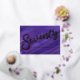 Seventy simple stroked modern art purple painted background with a gold foil text or your own foil color overlaided. Personalize this 70th birthday party script art milestone birthday invitation with your own birthday party event details, and a photos of your birthday girl on the reverse. Other years colors and matching items are available. © Original design by Sarah Trett for www.mylittleeden.com on Zazzle.