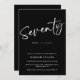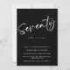 Yes, you can print on the back of your invitation for free! Most designs already have a corresponding design on the back that can be personalized using the Design Tool and going to Layers. This is a great way to communicate more information or further personalize your Seventy Black White Simple Script 70th Birthday Invitation. The option is really up to you.