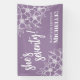 Seventy Lavender Lilac White 70th Birthday Banner: Celebrate a milestone with this elegant 70th birthday banner. Featuring a sophisticated lavender or lilac purple background adorned with white flowers, this banner combines classic serif fonts and script typography in white for a stylish look. The text can be personalized to highlight the birthday honoree's name and age, making it perfect for celebrating seventy wonderful years. This beautiful botanical design is customizable, allowing you to change the colors of the fonts and flowers to suit your theme. Ideal for a party or event, this banner adds a touch of charm and elegance to any celebration.