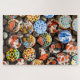 Seville, Spain. A series of differently and colourful decorated bottle caps.