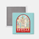 Seville retro travel design in an emblem style. It is situated on the lower reaches of the River Guadalquivir, in the southwest of the Iberian Peninsula.