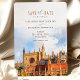 Announce your wedding in Seville, Spain, with this luxurious "Save the Date" card, featuring a beautiful watercolor illustration of the iconic Real Alcázar. The artwork highlights the grandeur of this historic palace with its intricate architecture, majestic towers, and warm sunlit tones in shades of golden ochre, terracotta, and sky blue. Perfect for couples planning a romantic Andalusian wedding, this card captures the elegance and charm of southern Spain, setting the tone for an unforgettable celebration steeped in history and beauty.