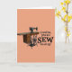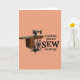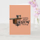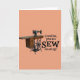 This greeting card features a nostalgic scene with a vintage stitching machine set against a warm peach and coral background. The machine is glossy black with fine gold accents, sitting snugly in a dark, polished wooden cabinet that feels like part of a cozy family workspace ❤️. An extended wooden surface stretches out to the left, while three small drawers with classic round knobs line the front, adding to the tidy, well-used look. Below, an ornate cast-iron stand with curling scrollwork supports everything, giving the piece an old-fashioned, treasured presence. To the right of the illustration, the message “Grandma, you are SEW amazing!” appears in strong black lettering, with “SEW” in all caps for emphasis. Soft, even lighting brings out the wood grain and the gentle metallic shine, like a quiet moment shared over a familiar craft 🌼. The text sits on the right side in black, balanced by the dark cabinet and machine on the left, all framed by the smooth peach-toned backdrop.
