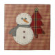 This Sew Christmas Tile is a digital art fabric layering of a snowman and tree. Note this is a print and not real fabric!