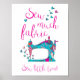 This fabulous design is pretty in pink and turquoise - and shows a love for all things sewing. Perfect for the sewer or quilter in your life. Brighten up your sewing area or craft room. The design features a turquoise and pink sewing machine, hearts, and a sewing saying. What's not to love!