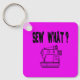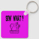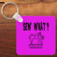 Keychain key fob holder ring printed with Sew What ? creative word text phrase pun question mark and sewing machine graphic design illustration by TheFabricSeal print on demand shop at Zazzle.com #ZazzleMade https://www.zazzle.com/store/thefabricseal TheFabricSeal©️Original.