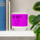 Combining a humorous sarcastic pun saying a play-on-word phrase, and a cool looking outline drawing of a modern style sewing machine. Color palette scheme shown in the design and background colors are hot pink, fuchsia, magenta, purple and violet.