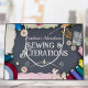 A vibrant and eye-catching shopping bag for sewing alterations services, perfect for tailors, seamstresses, and custom clothing creators. This professionally designed bag is great to deliver your finished clothing alterations in to your customer whether it may be for mending, tailoring, hemming, or custom sewing services. The front features a charming border of sewing tools—including buttons, spools of thread, pins and fabric swatches—set against a grey background for a cozy, yet professional feel. This promotional marketing material is ideal for using for your customer's clothes so they can remember where they got their clothes mended or altered.