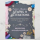 A vibrant and eye-catching flyer design for sewing alterations services, perfect for tailors, seamstresses, and custom clothing creators. This professionally designed flyer highlights your clothing alterations, mending, tailoring, hemming, and custom sewing services, making it easy to promote your seamstress business locally or online. The front features a charming border of sewing tools—including buttons, spools of thread, pins and fabric swatches—set against a grey background for a cozy, yet professional feel. A sewing machine with a stack of fabric appears on the back that allows you to showcase your services offered, business name, contact details, and custom garment services. This promotional marketing material is ideal for promoting dress alterations, suit tailoring, patchwork repairs, and handmade fashion designs in print or digital form.