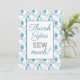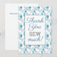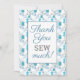 A beautiful blue patterned sewing and quilting Thank you flat card with a sewing machine, tailors dummy, scissors threads, bobbins and pins all on a white background . The text box wording can be amended to customize the card. The text currently says " Thank you sew much!" A fun way to say thanks from / to a sewer dressmaker or quilter. Perfect for your quilting or sewing group.