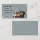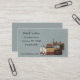 A country styled business card for the seamstress, tailor or crafts person with sewing machine, stack of fabric and jar of buttons on blue diamond pattern background.Graphics©Country Life Graphics