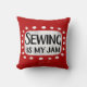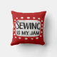 "Sewing Is My Jam" is a fun text design with a white accent shape surrounded by white whimsical textured dots.